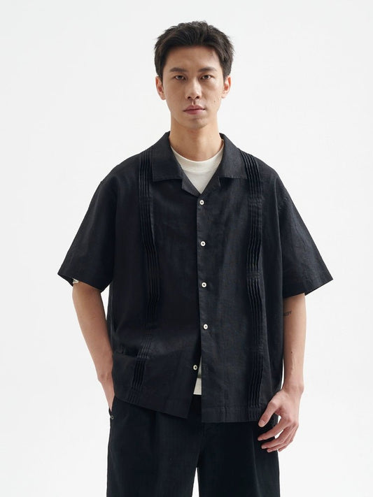 キューバカラー オルガンプリーツ 半袖 シャツ B08052