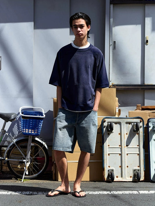 ヘビーウォッシュディストレストラグランスリーブ半袖Tシャツ B05318