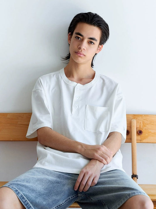 速乾性7a抗菌ポケット無地ヘンリーカラーTシャツ B053110