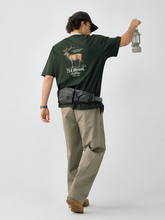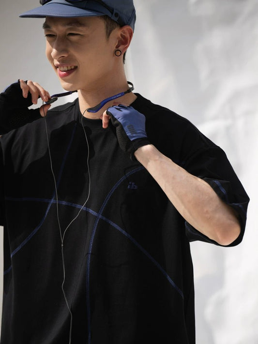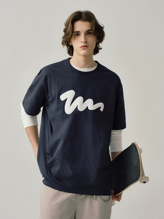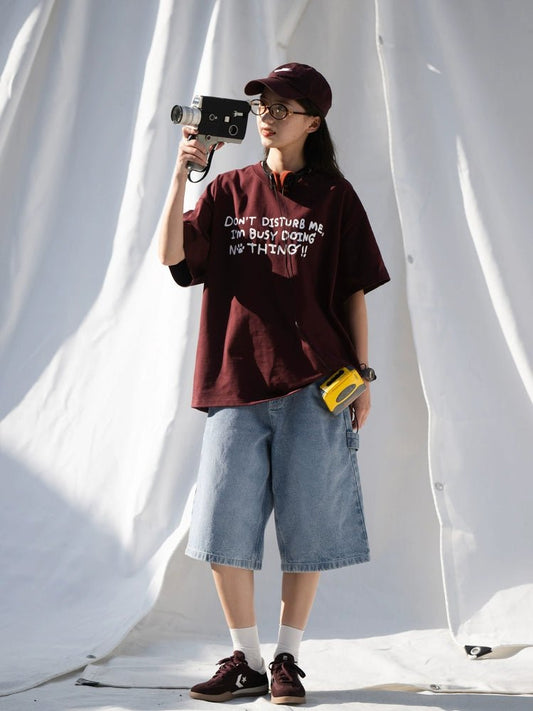 抗菌ルーズカジュアルクルーネック刺繍半袖Tシャツ B08062