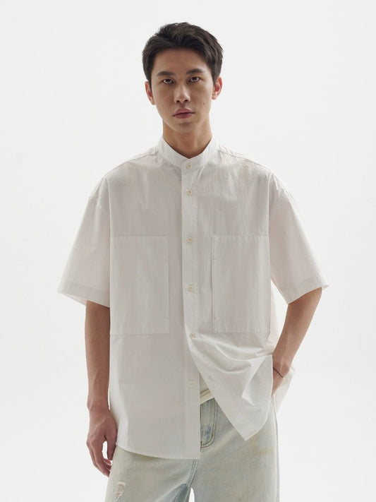 大ポケット スタンドカラー 半袖シャツ B08059