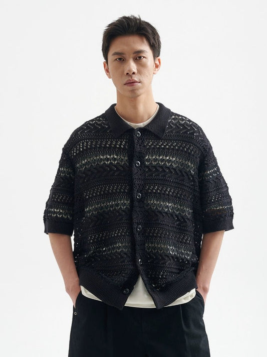 カットアウト テクスチャー ヤーン ニット カーディガン B08051