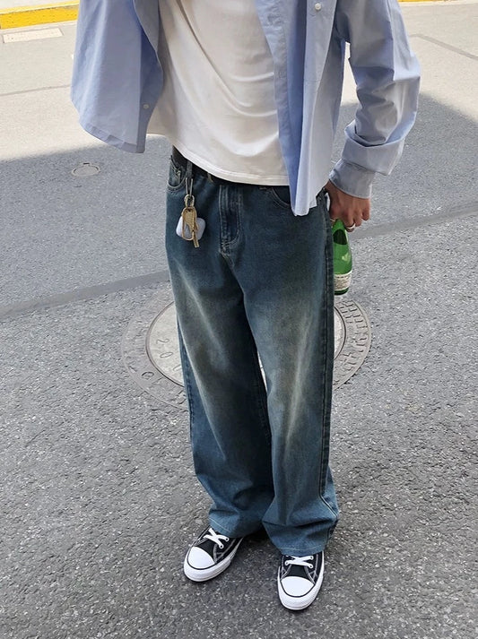BLUE WASH STRAIGHT LEG WIDE JEANS C92211