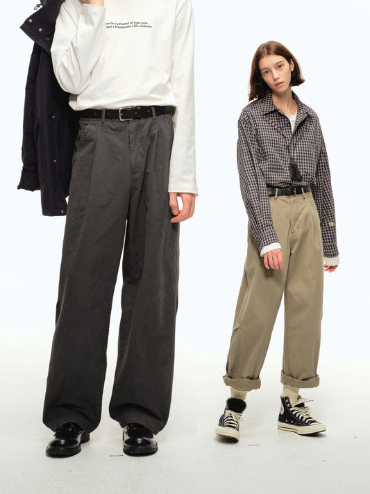 ルーズシルエットコットン発酵ヘビーキャンバスカジュアルパンツ B04251