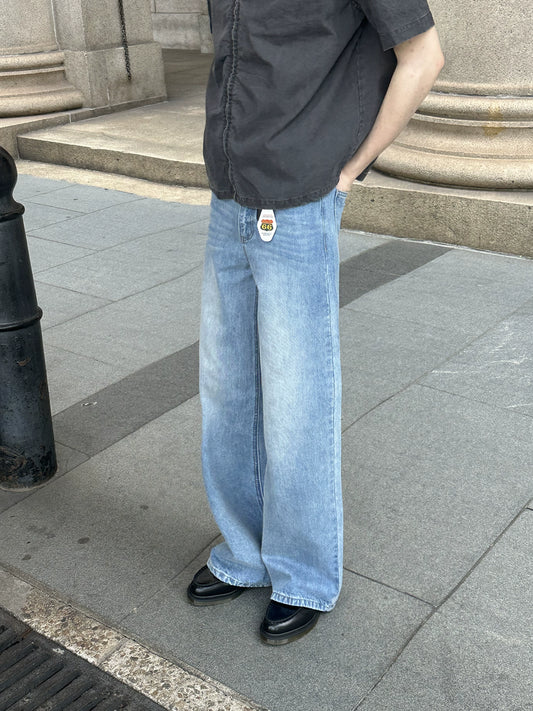 ォッシャブルインクスプラッシュルーズストレートレッグデニムパンツ R06161