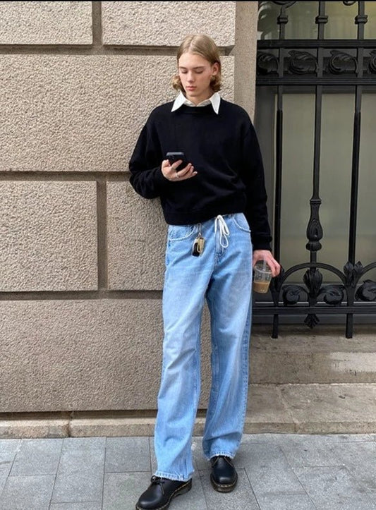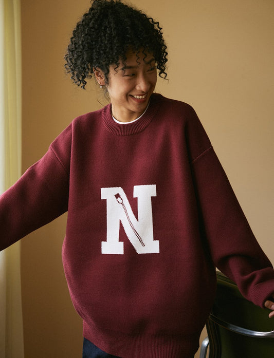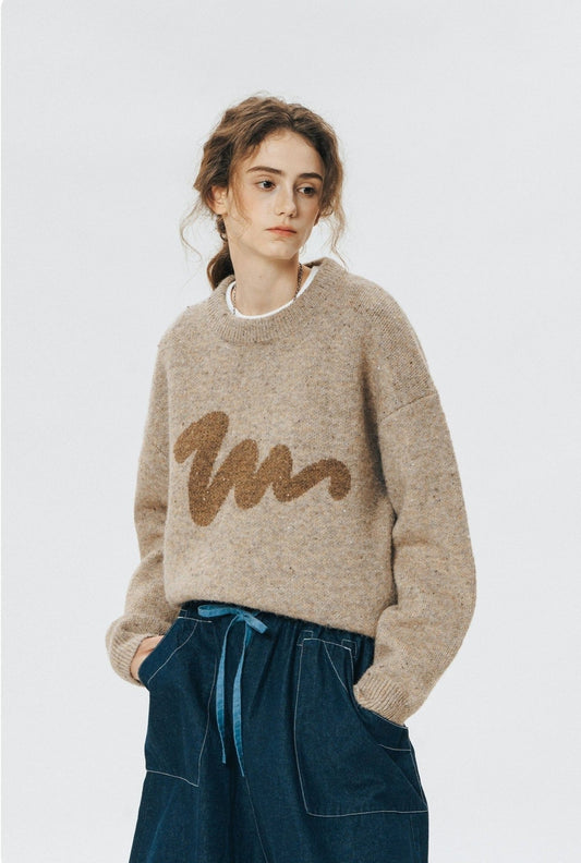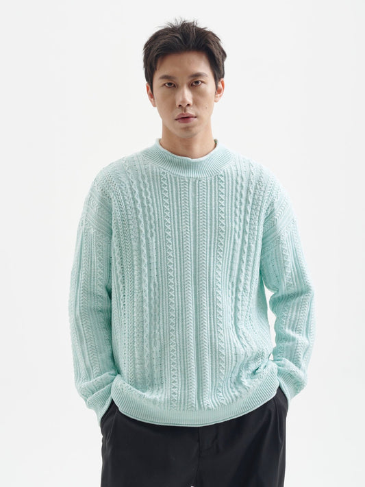 ケーブル織りクルーネック長袖ベースセーター B02199