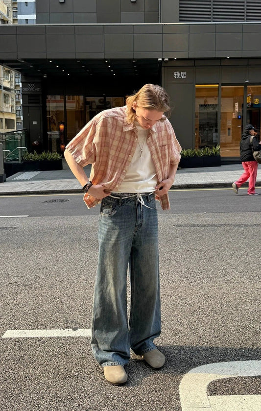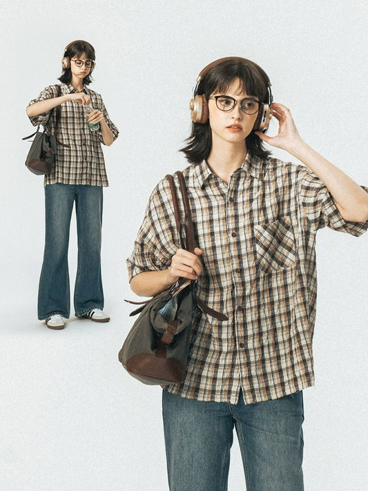 起毛アメリカンディストレスチェック半袖シャツ C04119