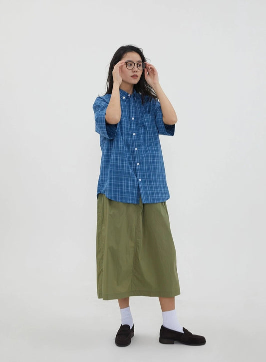 ヴィンテージチェックキューバカラー半袖シャツ B05037