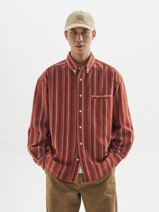 ストライプ ヴィンテージルーズ長袖シャツ B121214