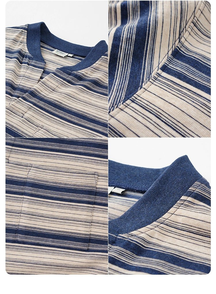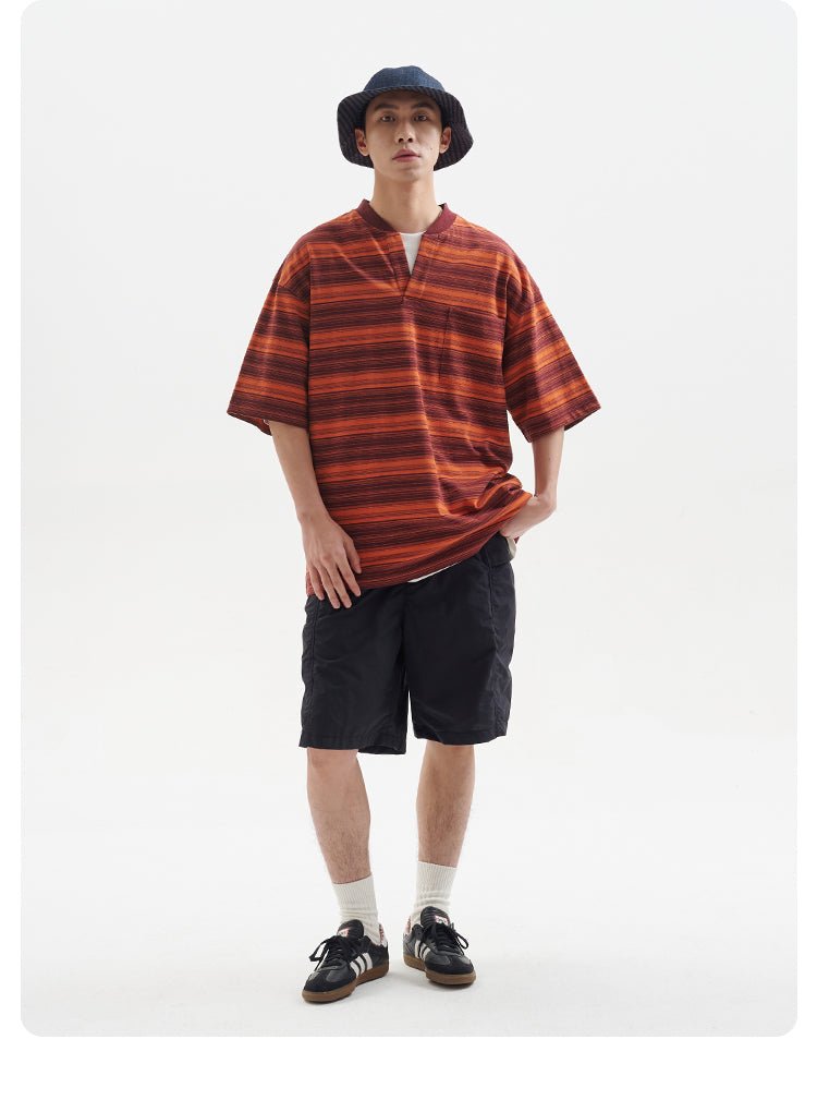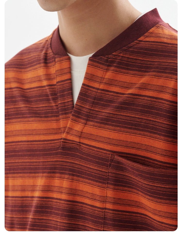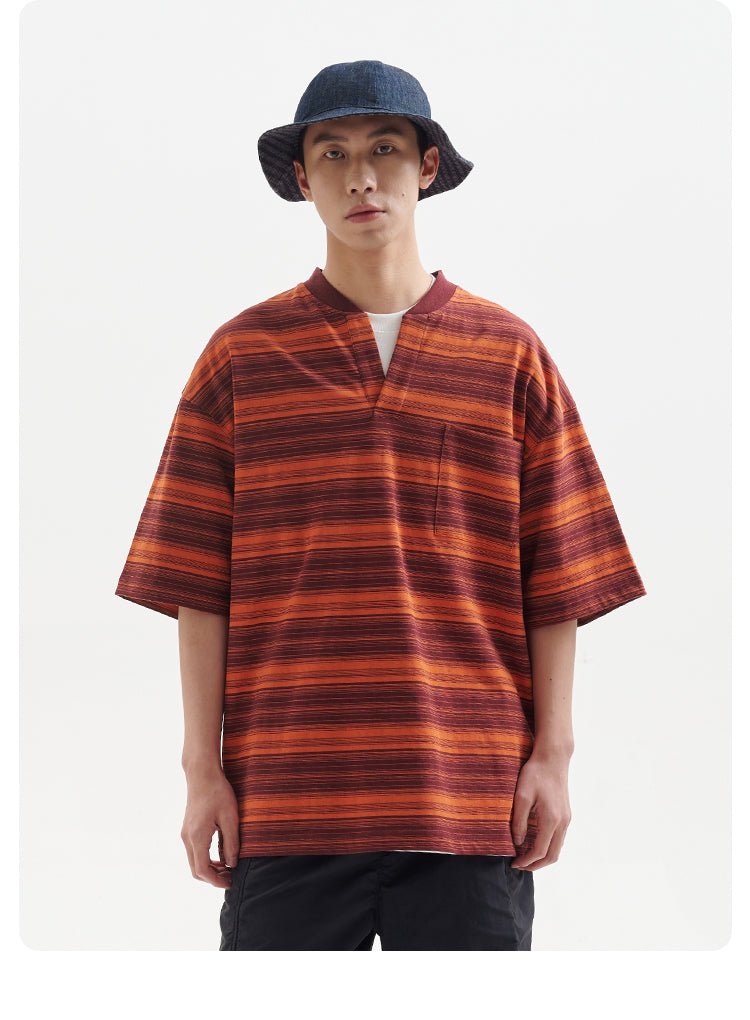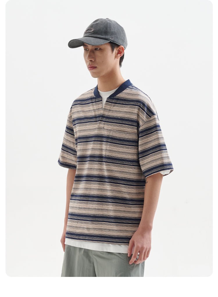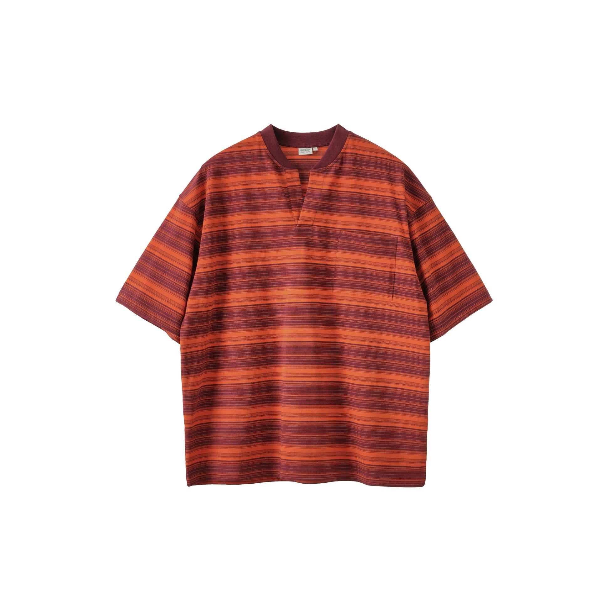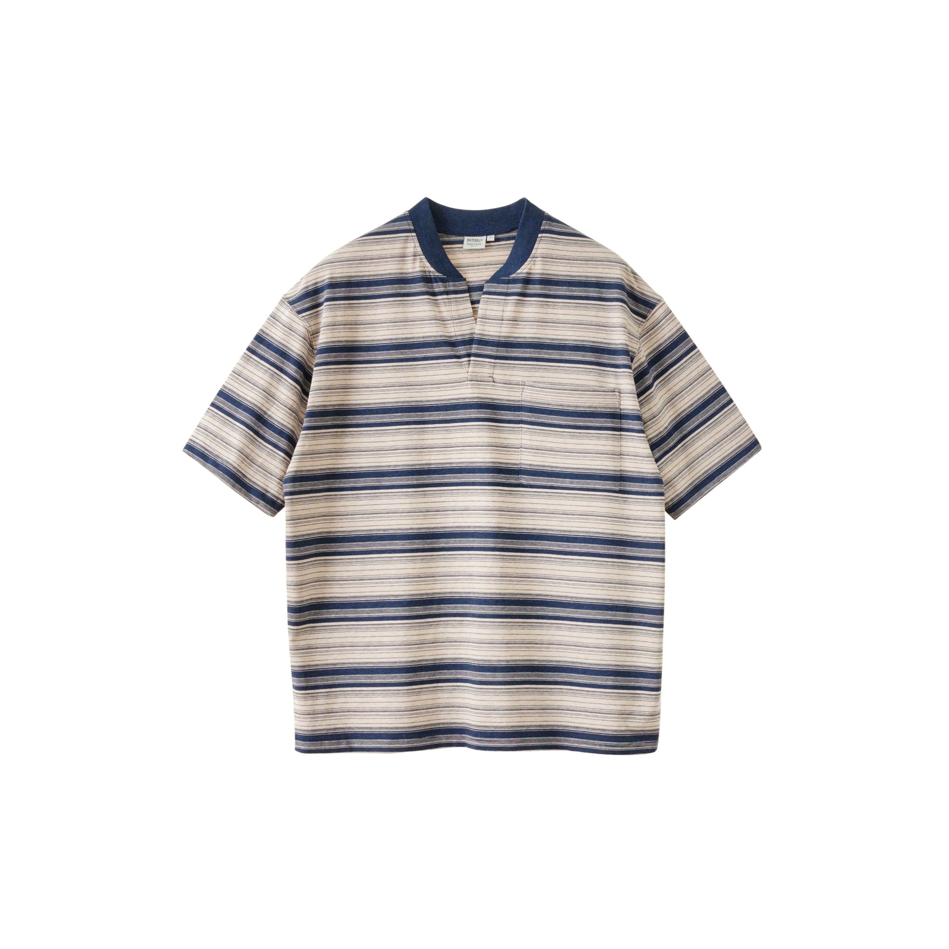 ヘンリーカラーストライプ半袖Tシャツ B08043