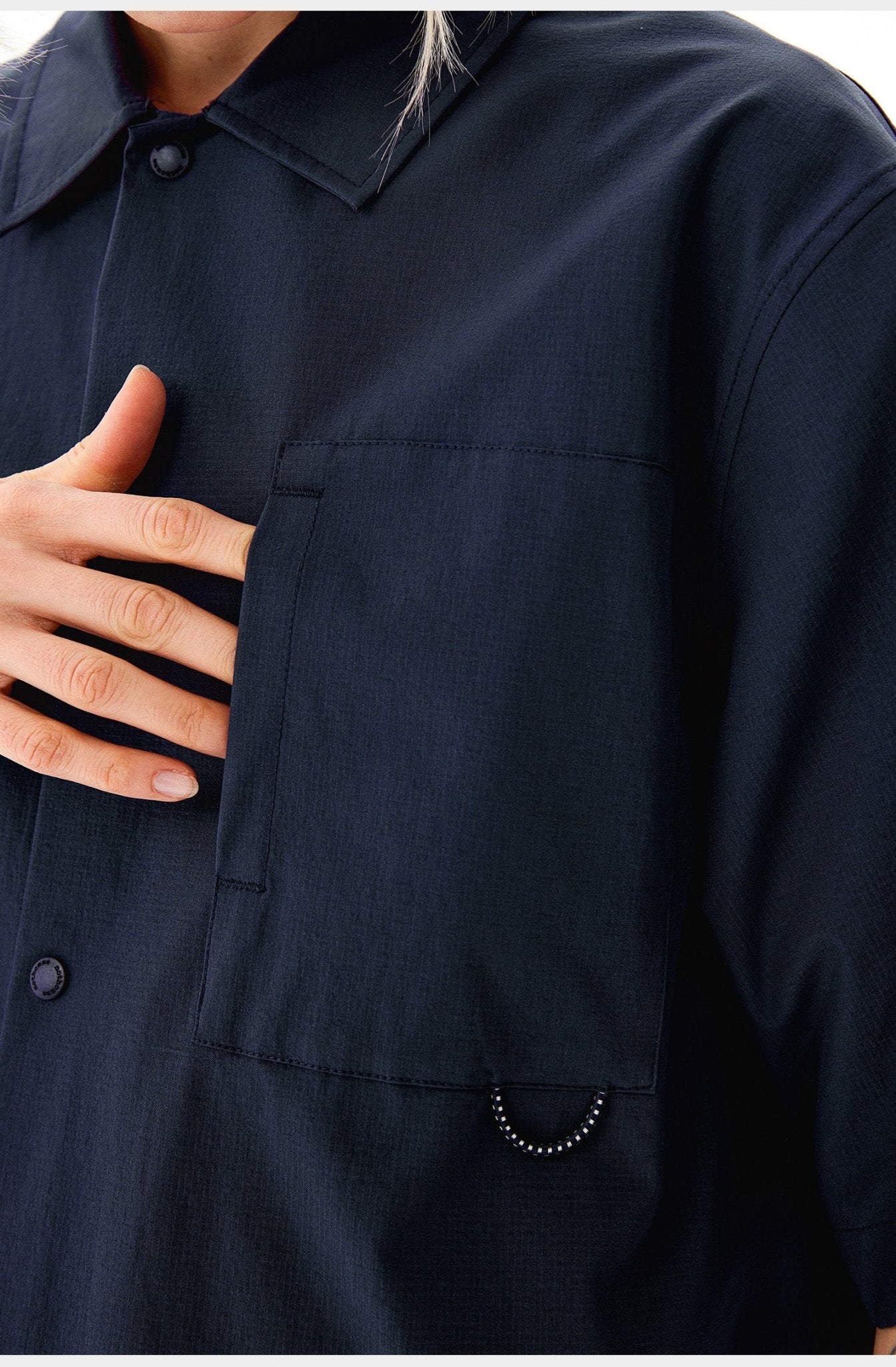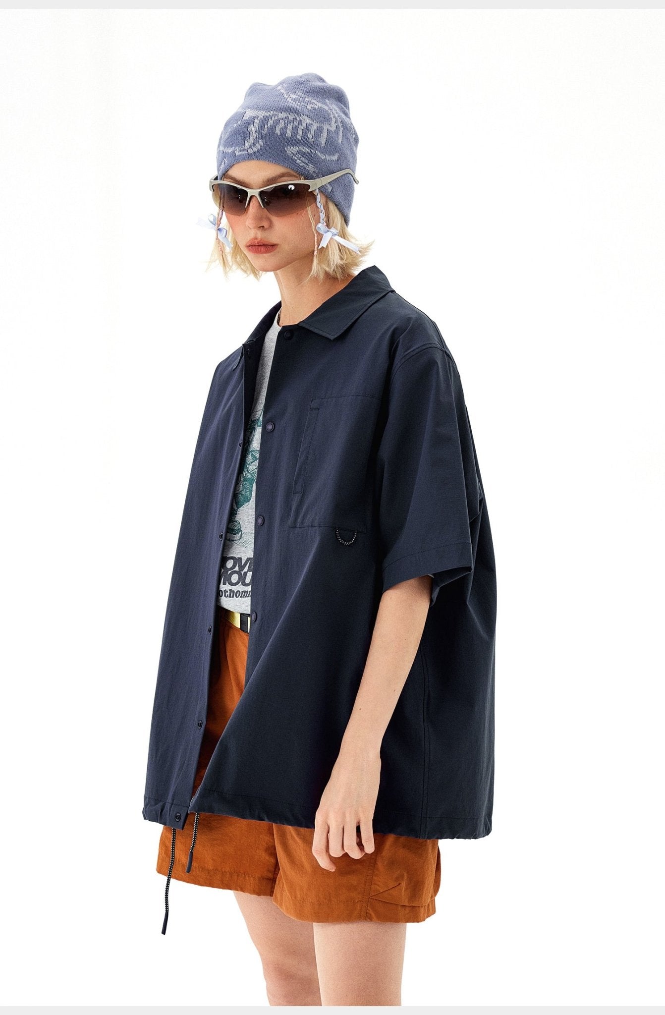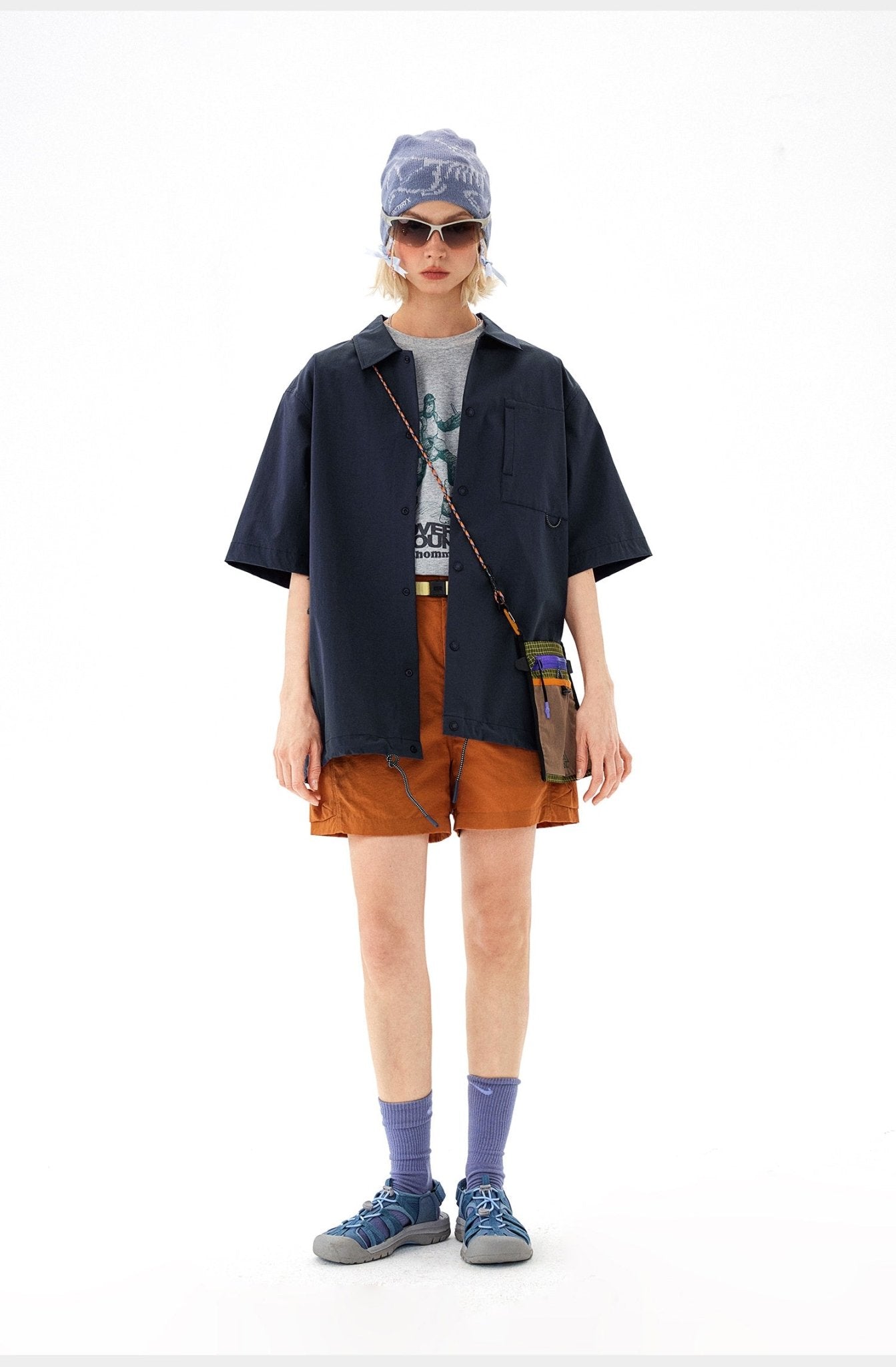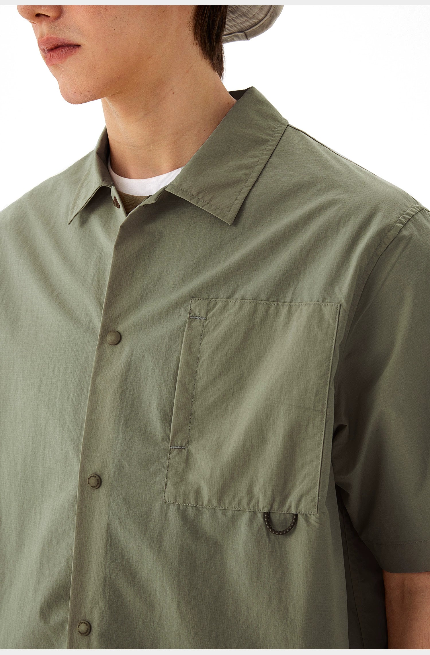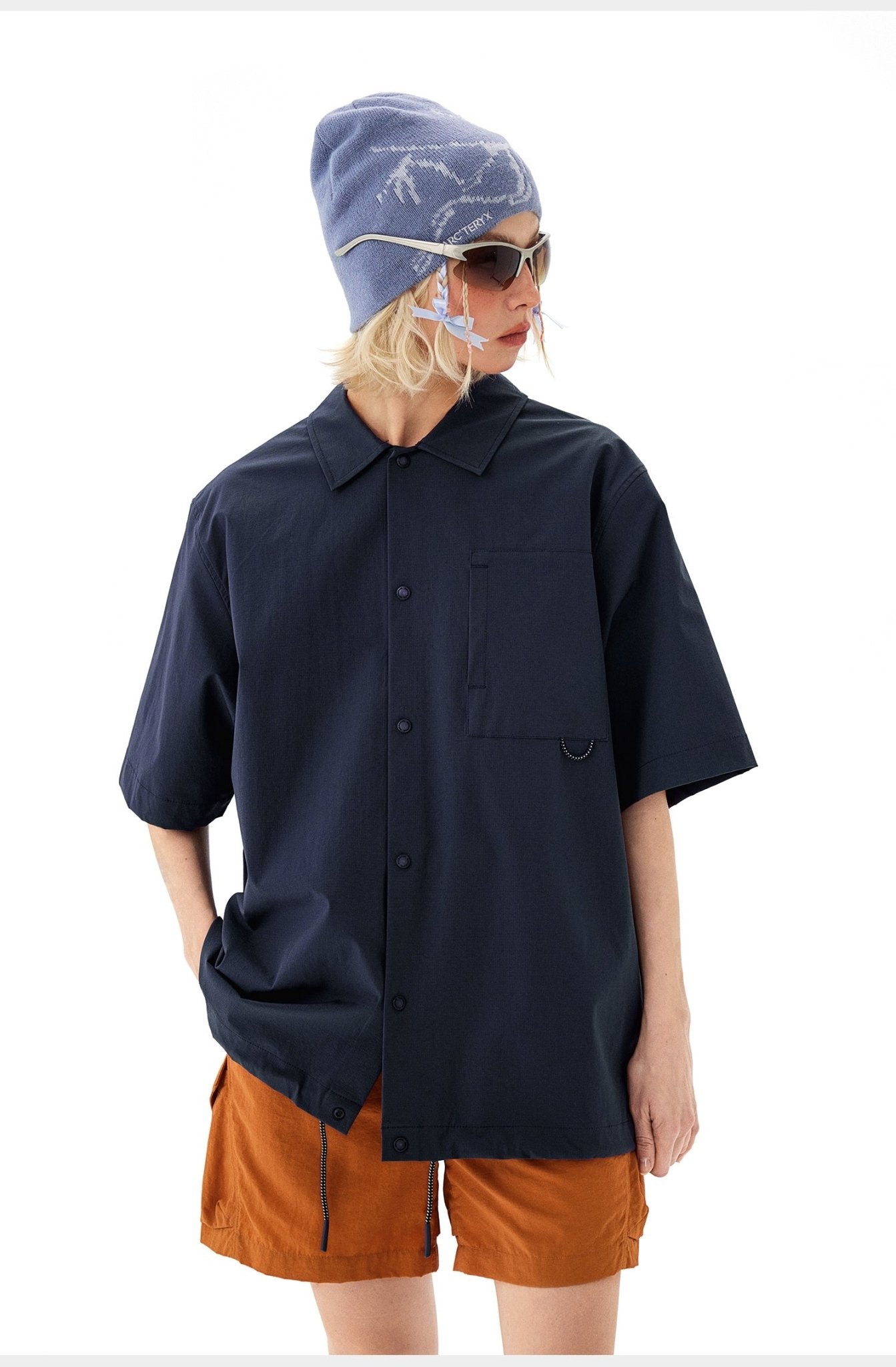 シンプルなソリッドカラーに仕上げられたこのシャツは、どんなスタイルにも合わせやすく、幅広いシーンで活躍します。ルーズなフィット感と大きめのポケットが、実用性と快適さを兼ね備えたデザインです。アウトドアからデイリーユースまで、幅広