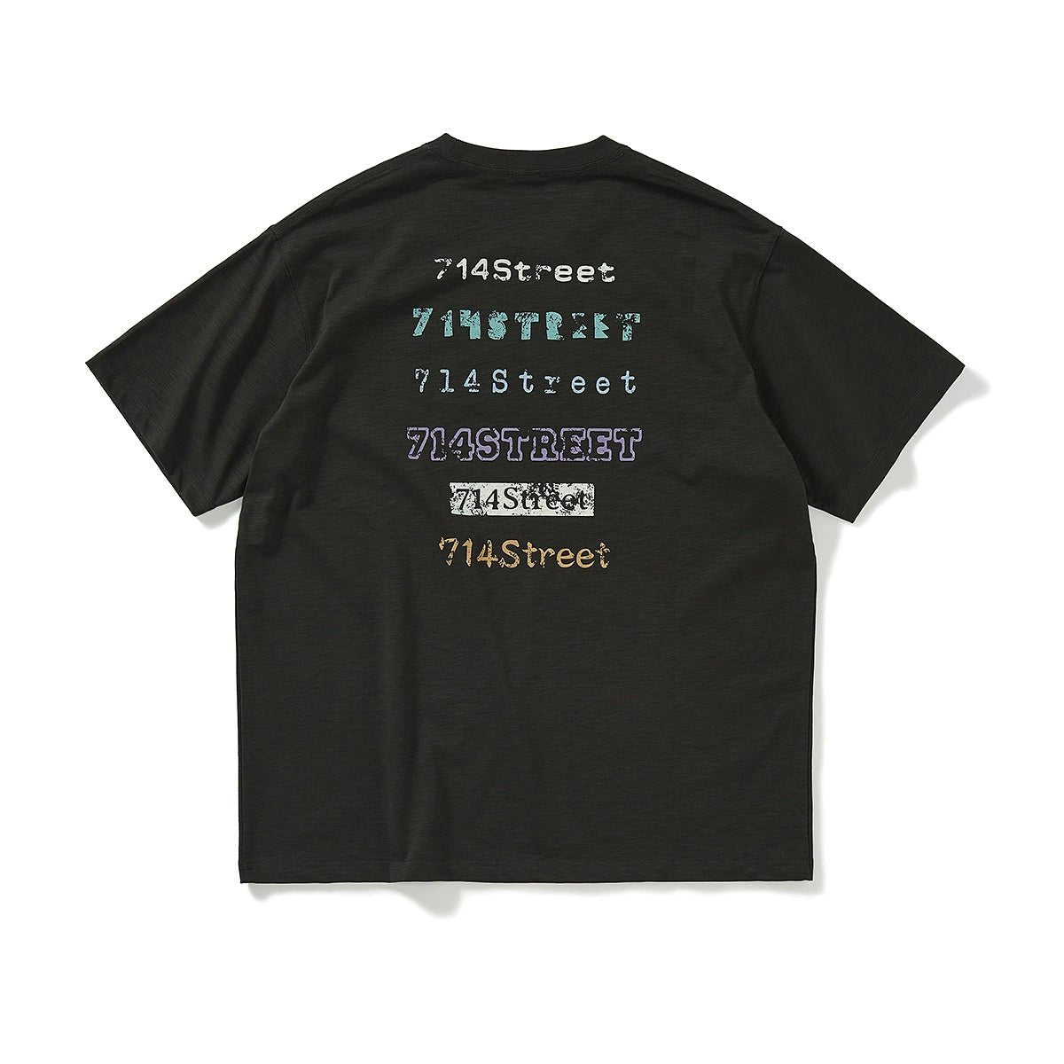 スラブテクスチャテキストプリント半袖Tシャツ S05011