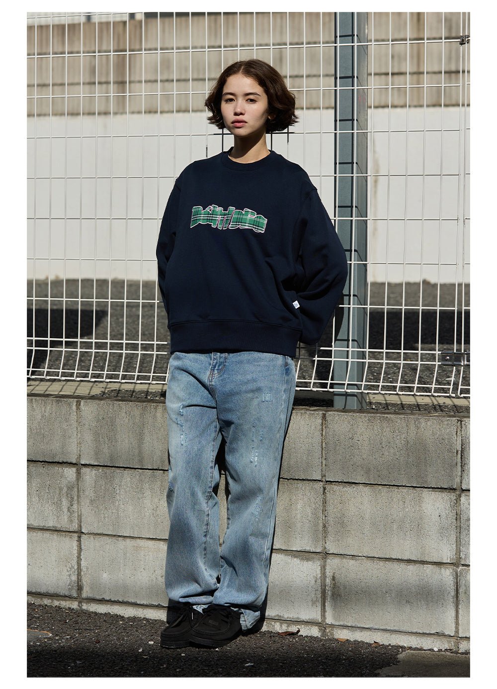 手描きチェック柄の刺繍が施された、個性と温かみを感じさせるアイテムです。 高品質なクロップドコットンを使用し、柔らかな着心地と寒さたっぷりな厚みで秋冬のさにも対応します。 クルーネックデザインがシンプルながら存在感を放ち、カップルでの着用最適です。