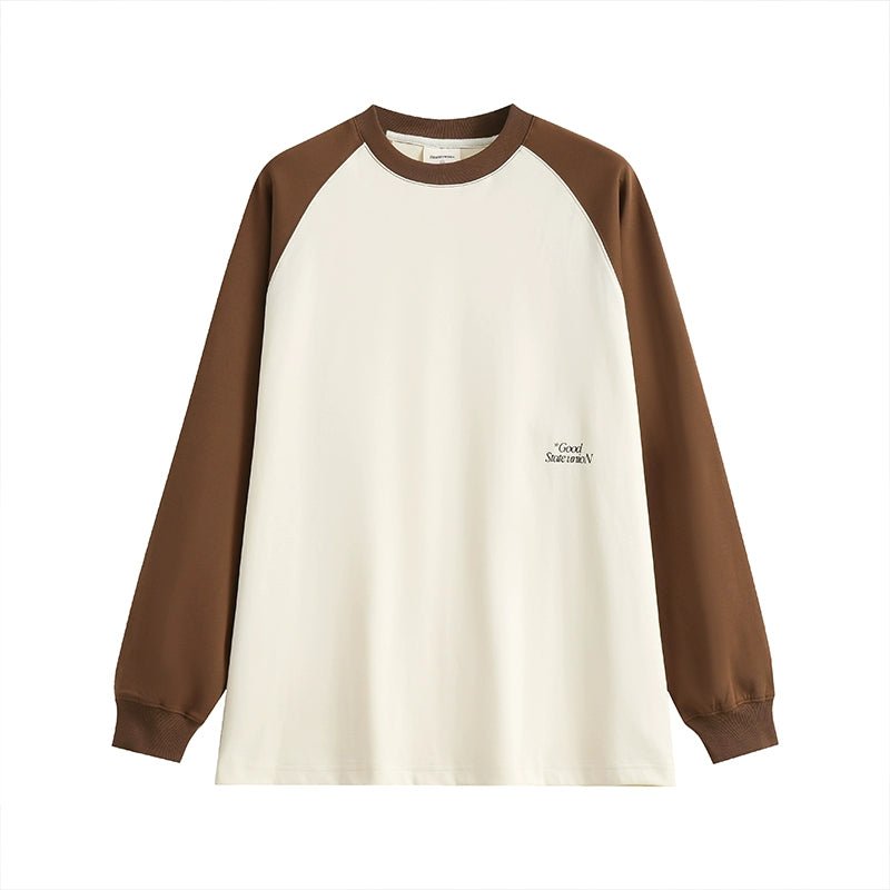 特徴的なコントラストパネルとラグランショルダーのデザインが、動きやすさと個性的なスタイルを演出。